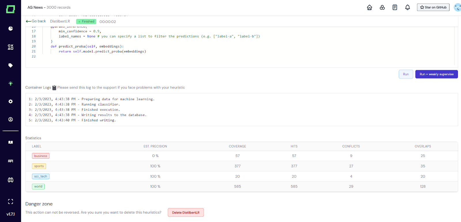Fig. 6: Screenshot of the labeling function details page after running the labeling function on the full data (indicated by the state finished).